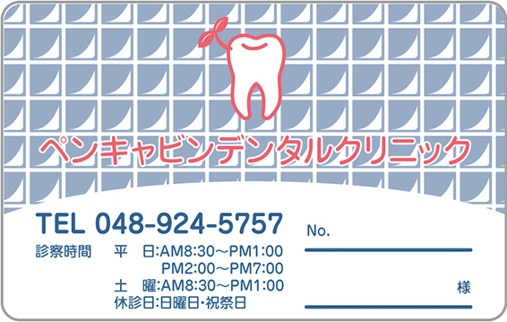 診察券をクリックすると拡大します。色などの変更の見本が見られます。